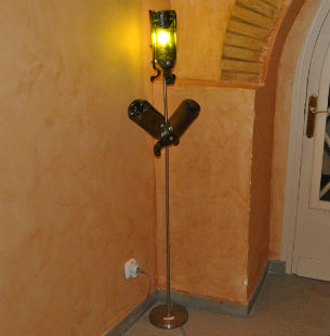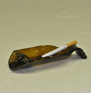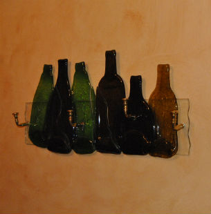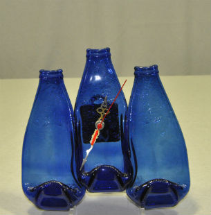 Bandejas, reposacucharas, ceniceros, relojes, percheros… son algunas de las utilidades de las piezas que Agustín crea a partir de botellas de vidrio.